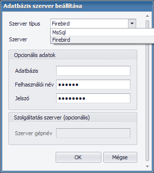 - Adatbázis szerver váltás – szerver típus kiválasztási lehetőség