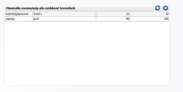 A kezdőlapra kihelyezhető minimális mennyiségek alá esett termékek listáját kiegészítettük a termékkód adattal.